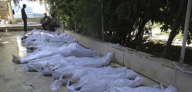 "Algunos de los síntomas, como la boca abierta, la mirada de muertes esculturales, son muy similares a lo que vimos en Halabja (el ataque con armas químicas que en 1988 Saddam Hussein lanzó indiscriminadamente para dar una lección a sus habitantes kurdos) donde miles de personas murieron por gas nervioso", señala Hamish de Bretton-Gordon, excomandante de las fuerzas de contra terrorismo British Chemical and Biological.