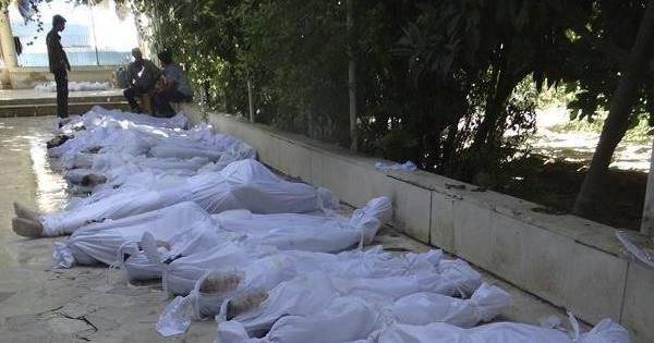Las víctimas también parecen tener dificultad severa para respirar. Esto le hace creer al doctor Jean Pascal Zanders, analista de armas químicas o biológicas, que existe "evidencia convincente de envenenamiento a través de asfixia" debido a la "tonalidad rosada azulada" de las caras de algunos de los muertos.