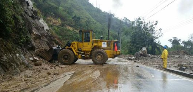 puyo.- Este bloqueo se suma al de las vías Baeza-Papallacta y Macas-Riobamba. Foto: Tomado del Twitter de MInisterio de Obras Públicas.