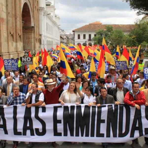 Uno de los representantes de la oposición, el líder del movimiento CREO, Guillermo Lasso, ingresó a la sesión luego de protagonizar una caminata por el centro histórico de la Atenas del Ecuador. Al término de su intervención, manifestó: “Hemos entrado para desenmarcarar esta treta de socialización de enmiendas, lo único que ellos quieren es permanecer en el poder eternamente, agredir a la estructura de empresa familiar porque ellos ya han descubierto el nuevo modelo, el modelo donde llegan a los cargos y ponen a todos sus parientes en los cargos públicos”.