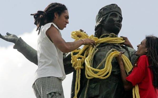 Dos años después, varios grupos tumbaron la estatua de Colón, que se encontraba en la céntrica Plaza Venezuela de la capital.