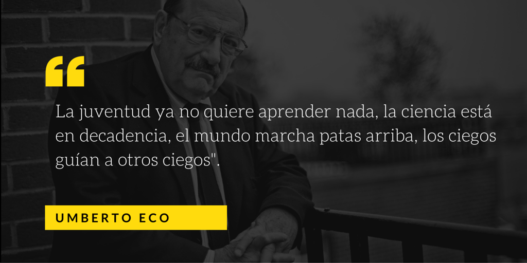 Su lucidez mordaz era innegable. La demostró cuando en una ceremonia en la Universidad de Torino, en 2015, refregó que el Internet es una multitud de imbéciles. “Ahora, en un mundo con más de siete mil millones de personas, ¿no estaría usted de acuerdo en que hay muchos imbéciles? No estoy hablando de manera ofensiva sobre el carácter de las personas. El sujeto puede ser un excelente empleado o padre de familia, pero es un completo imbécil en muchos asuntos. Con el Internet y las redes sociales, el imbécil pasa a opinar sobre temas que no entiende. El Internet es como Funes, el memorioso, el personaje de Jorge Luis Borges: recuerda todo y nada se le borra. Es necesario filtrar, distinguir. Siempre digo que la primera disciplina que debe darse en las escuelas debería ser sobre cómo usar el Internet, cómo analizar informaciones. El problema es que ni los mismos maestros están preparados para esto. Fue en este sentido que defendí recientemente la tesis de que los periódicos, en lugar de repetir lo que circula en la red, deberían dedicar espacios para el análisis de las informaciones que circulan, mostrando a los lectores lo que es serio y lo que es un fraude”. (Veja, 2015).