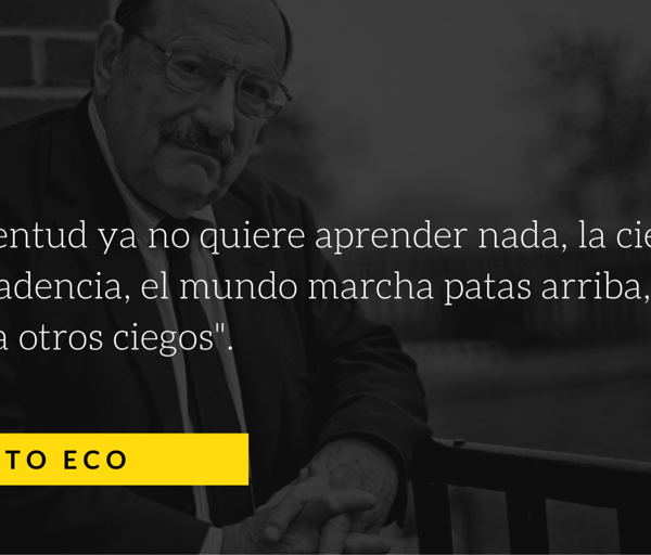 Ya en el prólogo de su obra insigne, El nombre de la rosa (1980), el escritor, ensayista, filósofo, semiótico y filólogo bosqueja una visión cruda (y real) del universo contemporáneo. “La juventud ya no quiere aprender nada, la ciencia está en decadencia, el mundo marcha patas arriba, los ciegos guían a otros ciegos y los despeñan a los abismos, los pájaros se arrojan antes de haber echado a volar, el asno toca la lira, los bueyes bailan, María ya no ama la vida contemplativa y Marta ya no ama la vida activa, Lea es estéril, Raquel está llena de lascivia, Catón frecuenta los lupanares, Lucrecio se convierte en mujer. Todo está descarriado”.