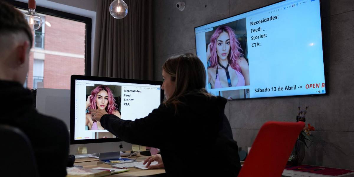 BARCELONA, España. Una mujer trabaja en su computadora con una imagen de una modelo creada con inteligencia artificial( )