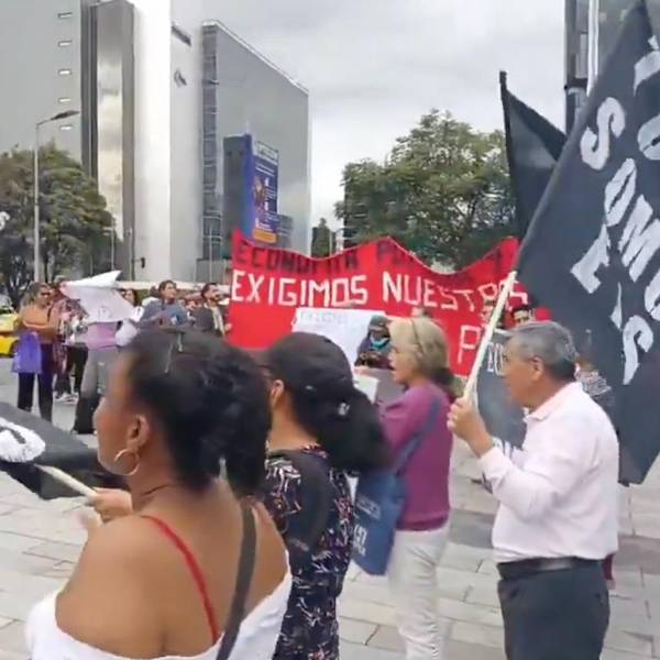 Es la segunda vez en menos de una semana que protestan frente al Ministerio de Finanzas, en el norte de Quito. Son representantes del sector de la economía popular y solidaria, asociaciones que prestan servicios de limpieza, textiles, construcción, alimentación y mantenimiento a hospitales y entidades estatales.