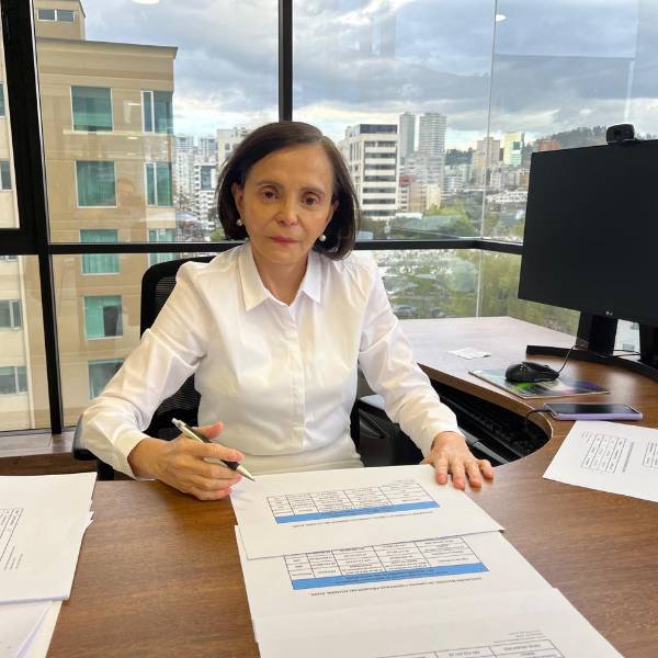 Ana Delgado, directora ejecutiva de Achpe, en su oficina durante la entrevista con Ecuavisa.com.( )