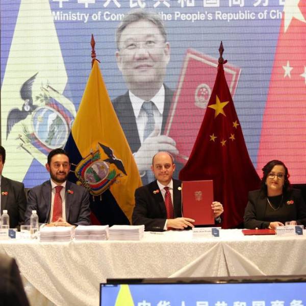 Ecuador y China firman un acuerdo comercial histórico de manera simultánea y virtual en Quito (19:30 del miércoles 10) y Beijing (08:30 del jueves 11 de mayo). Se logró tras 10 meses de reuniones y cuatro rondas de negociaciones.