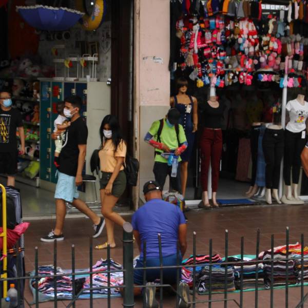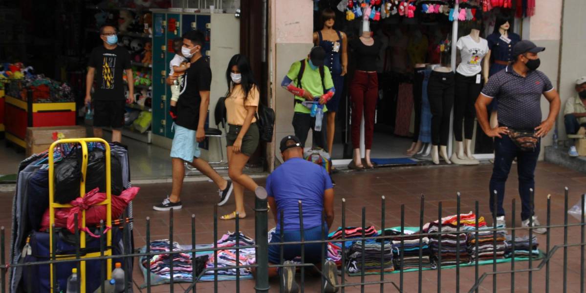 El comercio informal se toma las veredas de varias calles de los alrededores de la Bahía de Guayaquil. ( )