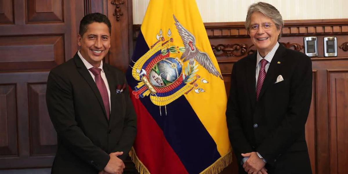 Franklin Galarza, alcalde de Morona y presidente de la Asociación de Municipalidades Ecuatorianas, junto al presidente Guillermo Lasso.( )