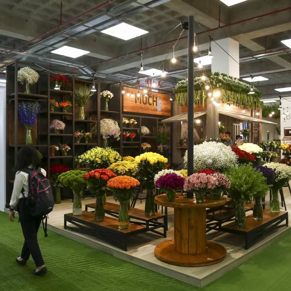Entre los productos exhibidos hay rosas de todos los colores posibles, pues esta flor compone el 70 % de la producción nacional, aunque también se encuentran otras especies como lirios, gipsófilas, orquídeas, crisantemos y dalias.