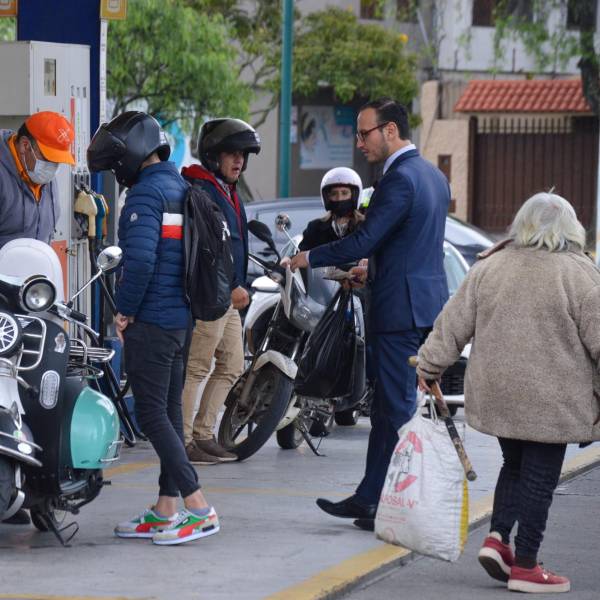 Imagen para graficar motociclistas que cargan combustible.( )
