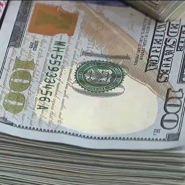 Imagen de un fajo de billetes de dólar estadounidense entregado en una agencia bancaria de Ecuador.( )