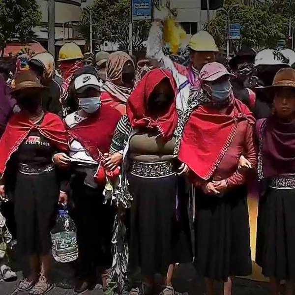 Avanzaron por la avenida Pérez Guerrero hasta la Patria, en el centro norte de la ciudad, ahí mujeres de las comunidades de Tungurahua encabezaron la marcha.