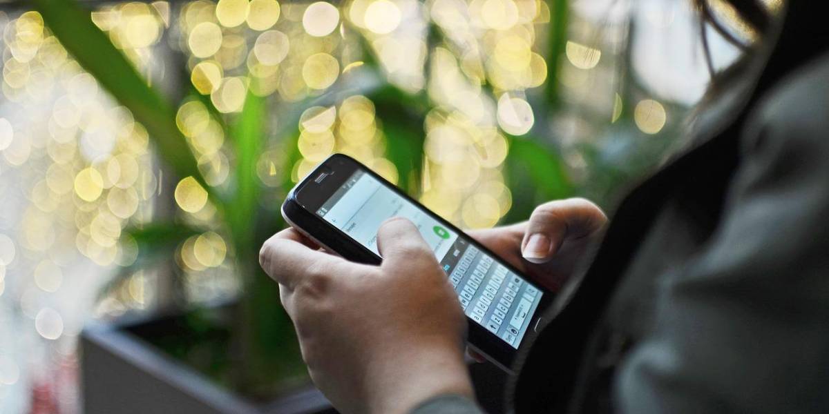 Imagen referencial para graficar a una persona que utiliza su celular para enviar mensajes de texto. ( )