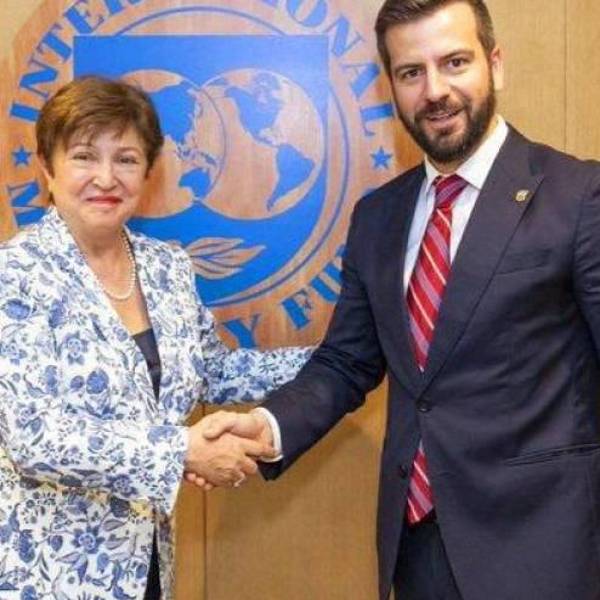 Imagen de archivo del ministro de Economía y Finanzas, Pablo Arosemena, y la directora general del FMI, Kristalina Georgieva.( )