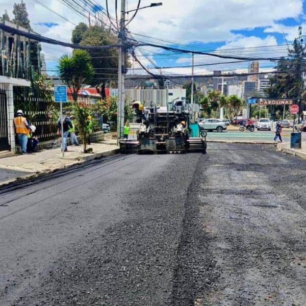 Colocación de asfalto en la calle Núñez de Vela, en Quito.( )
