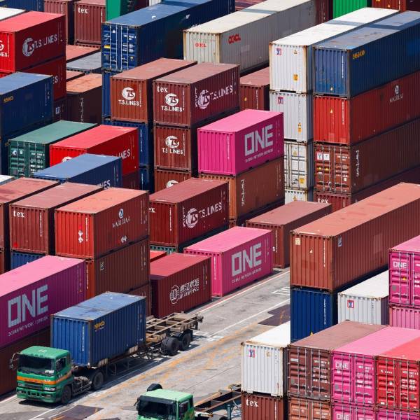 Vista de contenedores en el puerto de la ciudad de Keelung, Taiwán.( )