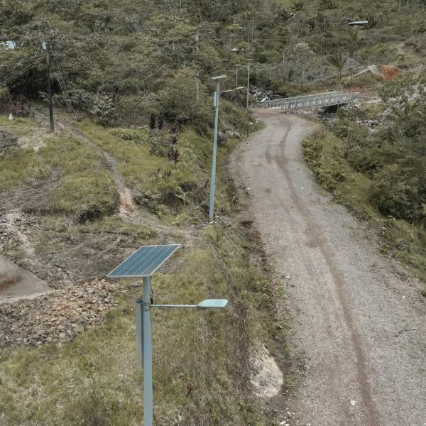 Uno de los sectores beneficiados es La Guaña, en la provincia del Carchi, donde se instalaron luminarias solares pese a la complejidad del ingreso.