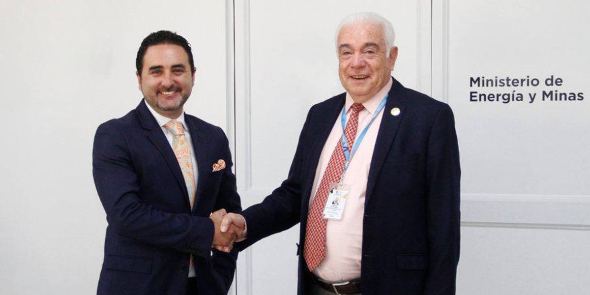 Saludo del ministro de Energía y Minas, Fernando Santos Alvite (der.), con Juan José Espinosa (izq.). ( )