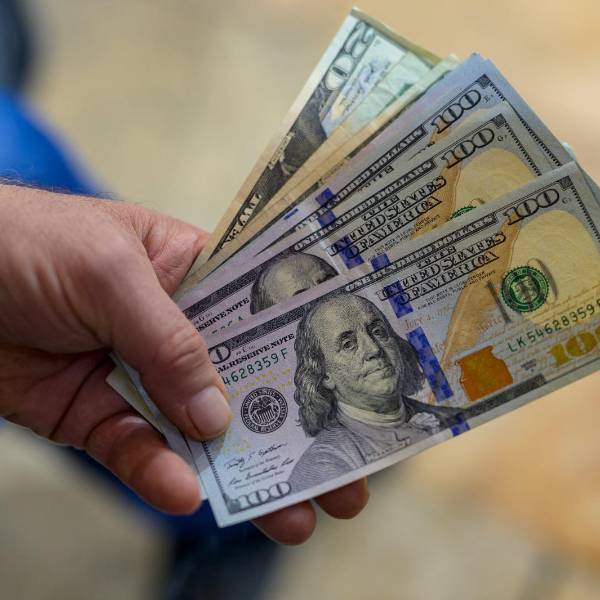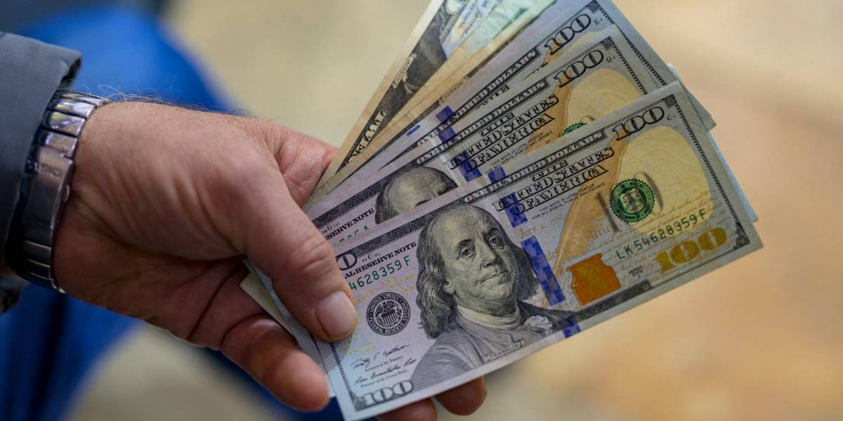 Un cajero muestra billetes de dólares estadounidenses en una casa de cambio.( )