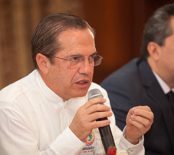 QUITO, Ecuador.- El canciller Ricardo Patiño durante el conversatorio con los medios de comunicación. Foto: Cancillería de Ecuador