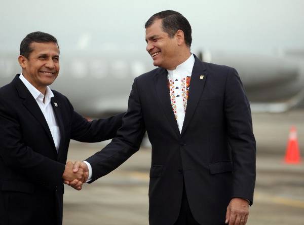 Tanto Correa como Humala expresaron su satisfacción por las favorables relaciones que mantienen ambos gobiernos, superada la guerra que les enfrentó entre enero y febrero de 1995, cuyo final fue rubricado por medio de un acuerdo de paz suscrito en 1998.
