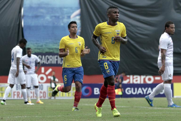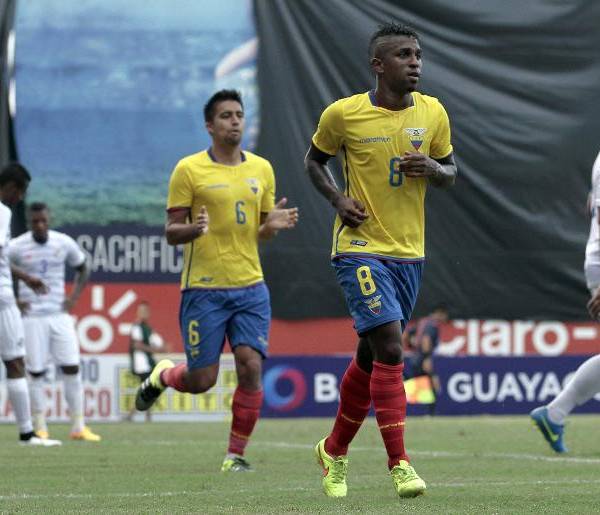 El jugador ecuatoriano Miller Bolaños durante partido amistoso co