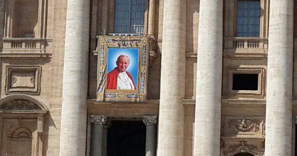 ROMA.- En la Plaza San Pedro del Vaticano yace una imagen del futuro santo; Juan Pablo II. Foto: Rafael Hernández/Ecuavisa