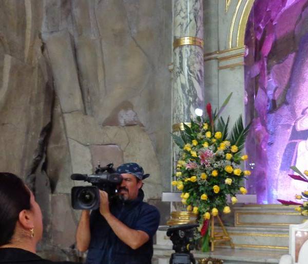 Nos dio un recorrido por la iglesia y nos llevó hasta el lugar más importante. La piedra donde está la virgen de Las Lajas.