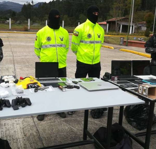 Entre las evidencias constan: sustancias estupefacientes (cocaína y marihuana en alta escala), cerca de $ 2 mil dólares en efectivo y soles peruanos, cuatro armas de fuego tipo revólver con varias municiones, armas cortopunzantes, 30 teléfonos celulares y cuatro computadores portátiles. Además, se retuvo un vehículo, dos motos y varios artefactos electrónicos cuya procedencia no pudo ser justificada.