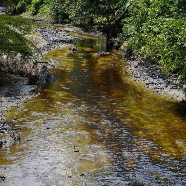 Imagen de un río contaminado por el derrame de petróleo en Esmeraldas( )
