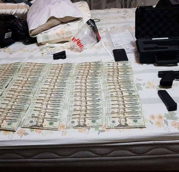 Se hicieron 20 allanamientos y se encontró cerca de 300 mil dólares en una caja fuerte y armas de fuego. Foto: Fiscalía -