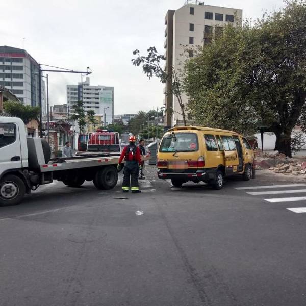 Este miércoles 13 de septiembre se registró un accidente de tránsito en la calles Reina Victoria y Robles en la ciudad de Quito. En el accidente estuvieron involucrados una camioneta y una furgoneta escolar, en la que se trasladaban 17 niños de la escuela Santa Mariana de Jesús, según informó Raúl Cárdenas, coordinador de Operaciones de la Agencia Metropolitana de Tránsito.