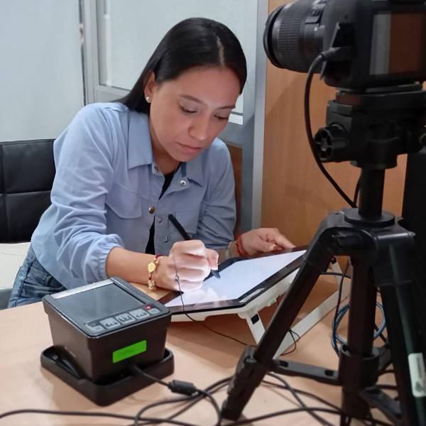 Ciudadana firmando electrónicamente para obtener pasaporte( )
