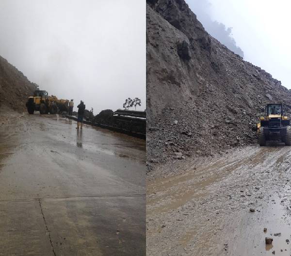 #MTOPInforma: esfuerzos continuos de personal y maquinaria por despejar deslizamiento en el km 49 de la vía Macas-Riobamba; no obstante, clima adverso persiste y se registran nuevos deslizamientos.