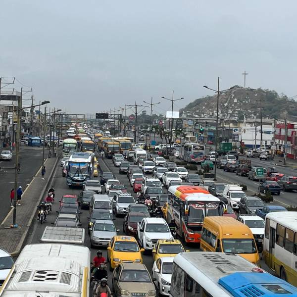 Según registran las cámaras del ECU 911, cientos de conductores avanzan despacio a lo largo de la avenida Nicolás Lapentti, en Durán.
