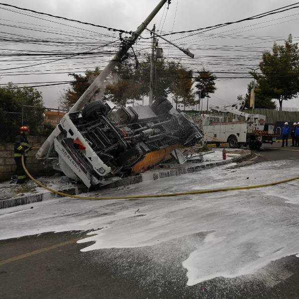 El vehículo pesado transportaba diesel, el cual regó sobre la calzada rápidamente. Los vecinos notificaron la emergencia al sistema ECU 911 que gestionó la llegada de los equipos de rescate de Policía Nacional, el Cuerpo de Bomberos de Ambato (CBA), Cruz Roja y el Ministerio de Salud. "Un camión de transporte de combustible había perdido pista y se estrelló y volcó contra el poste de alumbrado público y posteriormente contra un cerramiento de un terreno baldío", informó la entidad.