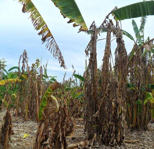 Así lucen las plantas de banano afectadas por la plaga del Moko.( )
