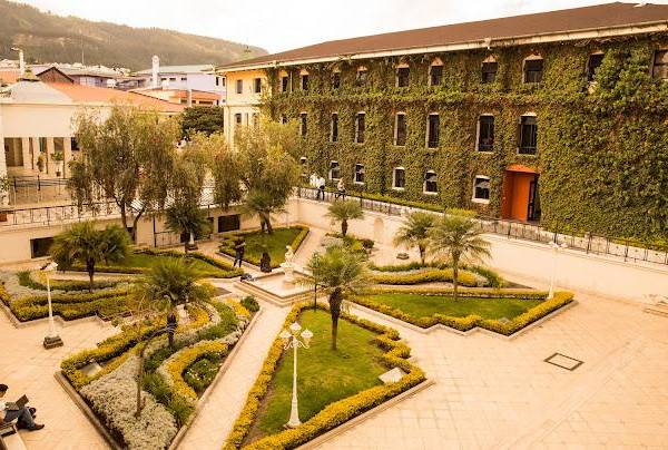 Plazoleta en los exteriores del edificio Maxwell y DaVinci en el campus de la Universidad San Francisco en Cumbayá. Foto: Internet