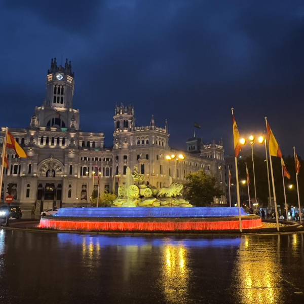 En España, la emblemática fuente de la diosa Cibeles de Madrid, situada en el centro de la ciudad, se iluminó durante unas horas, entre el martes 23 y el miércoles 24 de mayo.