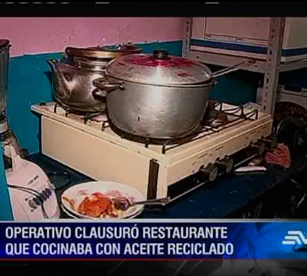 Francisco Alvarado, comisario de salud de la zona, encontró en uno de los restaurantes aceite reciclado, ollas en condiciones inadecuadas para cocinar y productos en mal estado debido a que en un mismo congelador guardaban alimentos cocinados y crudos.