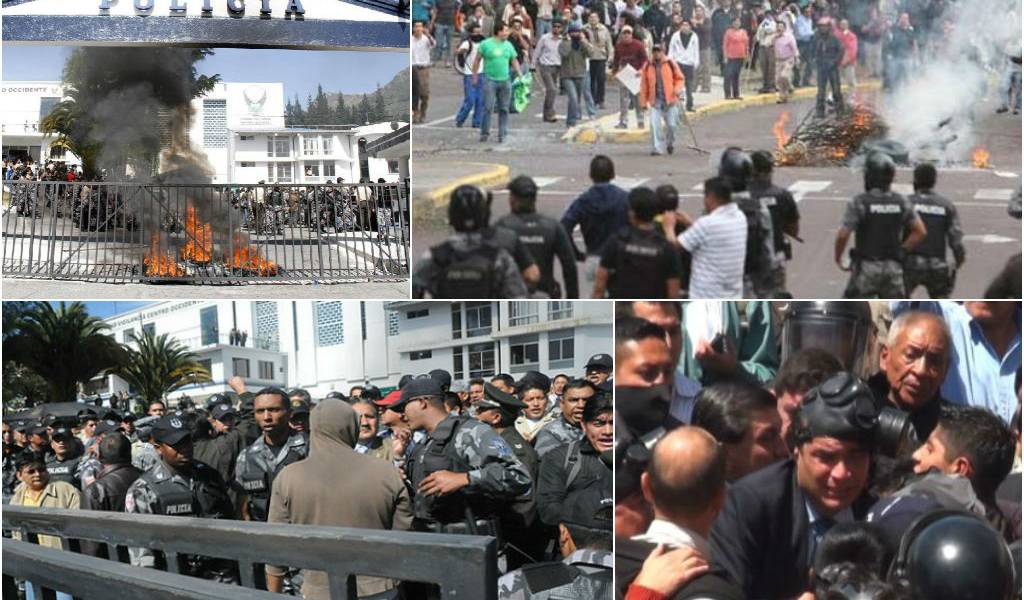 Hoy, hace cuatro años, el país vivió momentos de zozobra. La aprobación de la Ley Orgánica de Servicio Público (Losep) detonó la inconformidad en la Policía Nacional, que el 30 de septiembre de 2010 protagonizó una revuelta en el Regimiento Quito, y derivó posteriormente, en una crisis de seguridad. El presidente de la República, Rafael Correa, en su intento de solucionar el conflicto generado, acudió hasta el lugar y eso provocó que se avivara más el reclamo. A este hecho, el Régimen lo califica como un planificado intento de golpe de Estado en su contra. (Visite aquí nuestra galería de fotos)