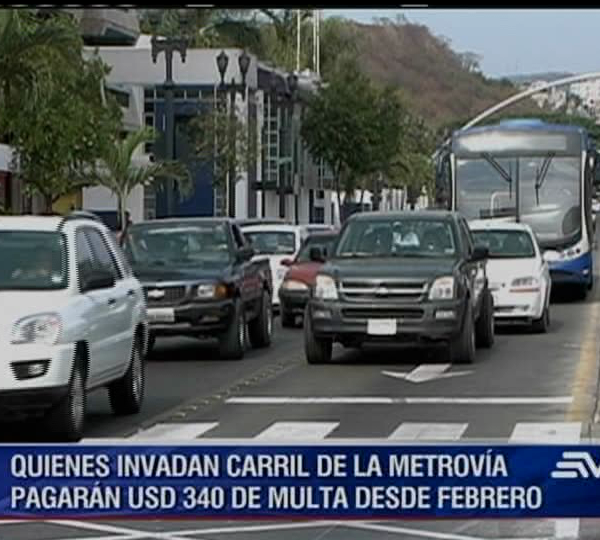 El Municipio de Guayaquil aprobó hoy el incremento de la multa para quienes invadan el carril exclusivo de la Metrovía. La sanción pasa de 34 dólares a 340 dólares y su aplicación será a partir de febrero próximo.