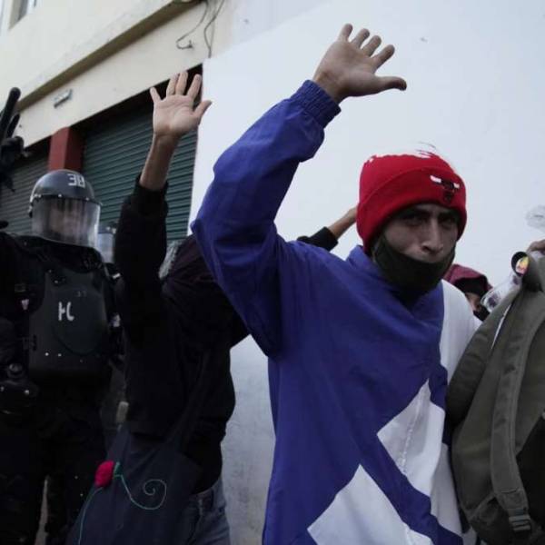 La carga policial, en decenas de motocicletas, se produjo en la plaza de Santo Domingo, en el casco histórico de la capital, después de que participantes en la concentración arrojaran piedras y otros objetos contra fuerzas de seguridad apostadas en una de las intersecciones que conducen al Palacio presidencial de Carondelet, a unos 600 metros.