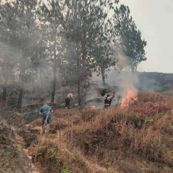 Según el COE cantonal, esta mañana el fuego estaba controlado en un 75%, pero justo cuando parecía haber tregua, los fuertes vientos lo han reavivado, obligando a empezar de nuevo.