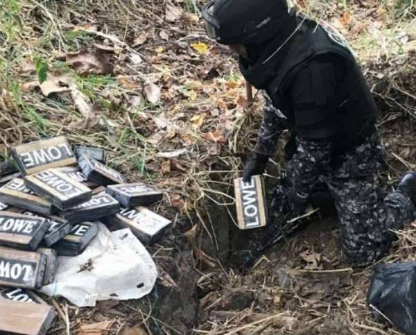 La Policía encontró sacos de yute bajo tierra, fue necesario el uso uso de maquinaria pesada más el trabajo de hombres con picos y palas; para sacar el cargamento que permanecía oculto en una finca en Ligüiqui, comunidad rural ubicada a 28 kilómetros al oeste de Manta.