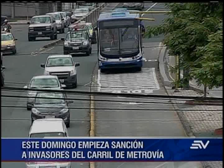 Cherrez aclara que todo tipo de vehículo, que no sea Metrovía, que invada el carril será sancionado: “Todo tipo de vehículos, tenemos unas horas establecidas, horas pico en las que vemos que buses de transporte escolar, taxis, vehículos particulares invaden el carril”.