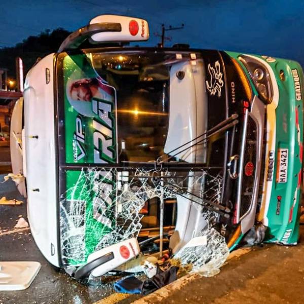 De acuerdo a información brindada por el ECU 911 de Samborondón, el siniestro ocurrió pasadas las 05:20, a la altura del ingreso al Santuario del Divino Niño. En el accidente estuvo involucrado un bus interprovincial perteneciente a la cooperativa Patria que perdió carril y terminó volcándose. El automotor quedó virado en plena avenida.