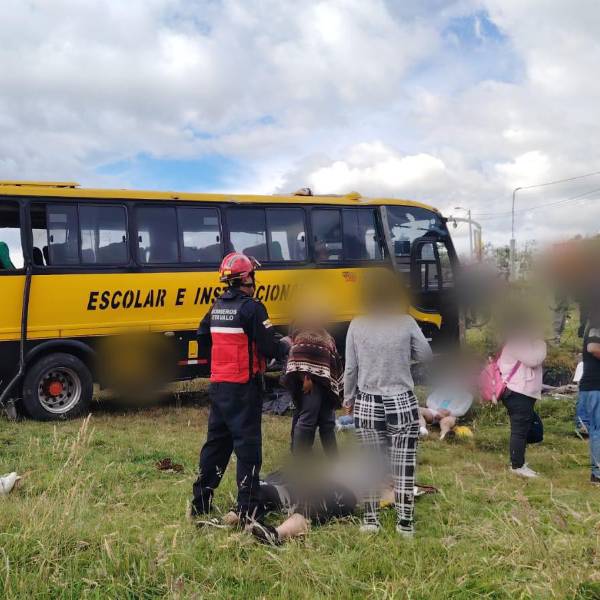 Un siniestro de tránsito con un bus de transporte escolar dejó numerosos heridos en Otavalo