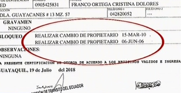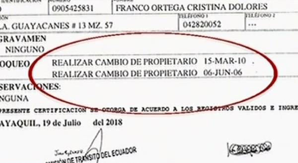 Cristina Franco habla de un mentira, ella tiene una deuda de 1,408 dólares con la ANT por mátriculas impagas. Según ella, corresponde a valores por un vehículo que vendió hace 35 años.